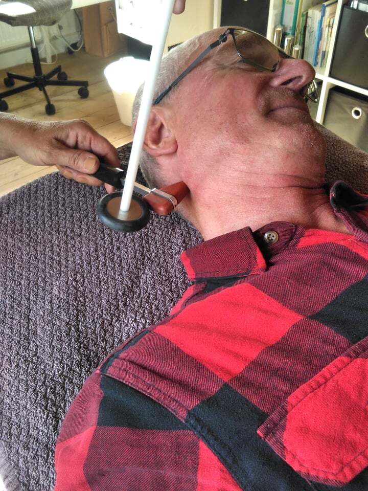 Efter første gang kunne han endelig ved egen hjælp løfte sin arm og han var målløs. Det samme var jeg og fik da også bestilt tid til mig selv.